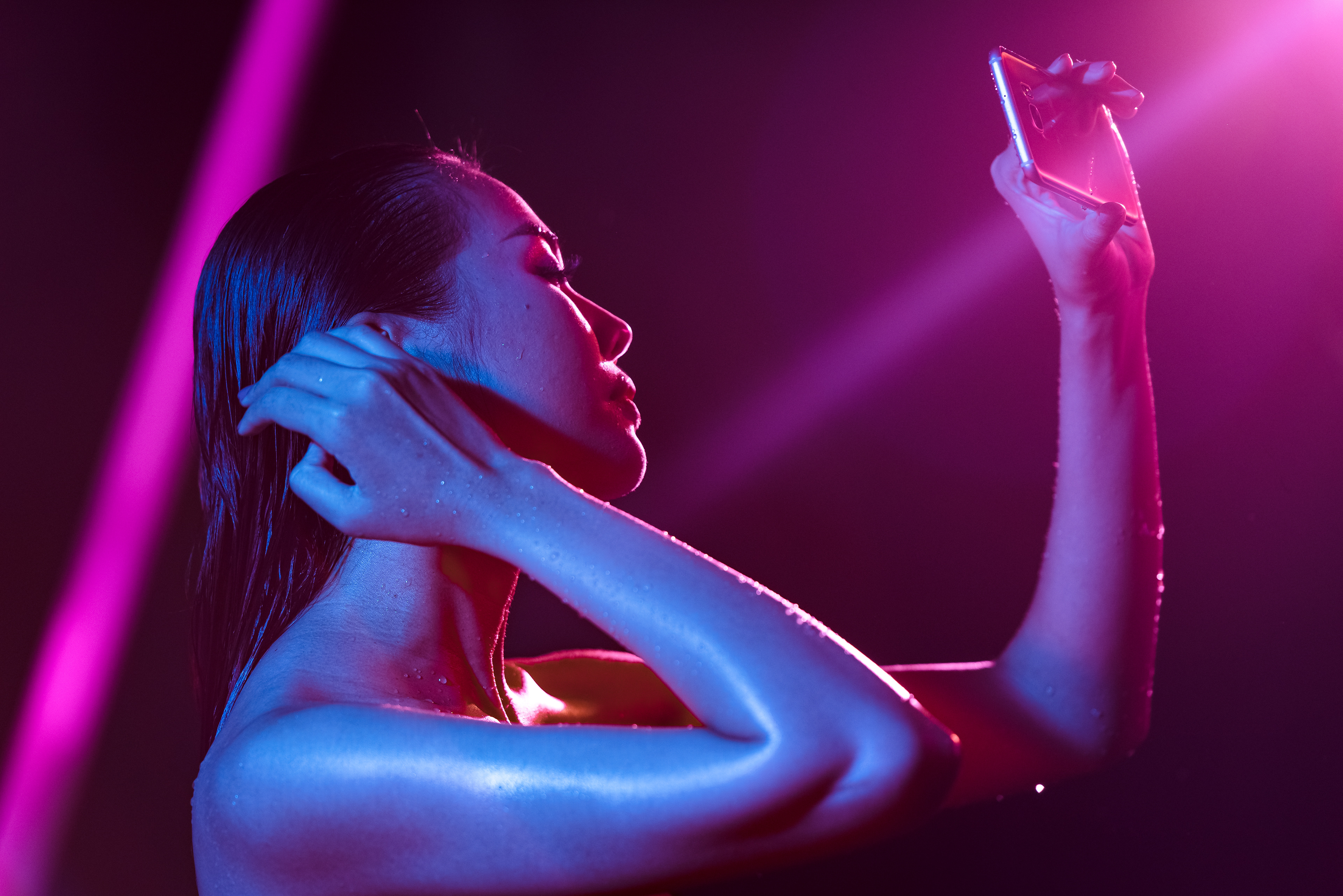 The stills of supermodel Thanh Hang were taken while filming a promotional video for the Samsung Galaxy S7 Edge Pink phone. This TVC was awarded Winner of Golden Bell Award, Vietnam. Commercial of the year 2016.